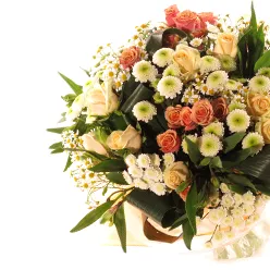 Букет из кремовых роз и альстромерии Карамелька