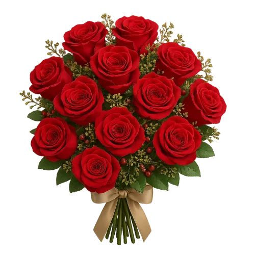 - Средний - 11 роз, зелень, оформление, упаковка, лента