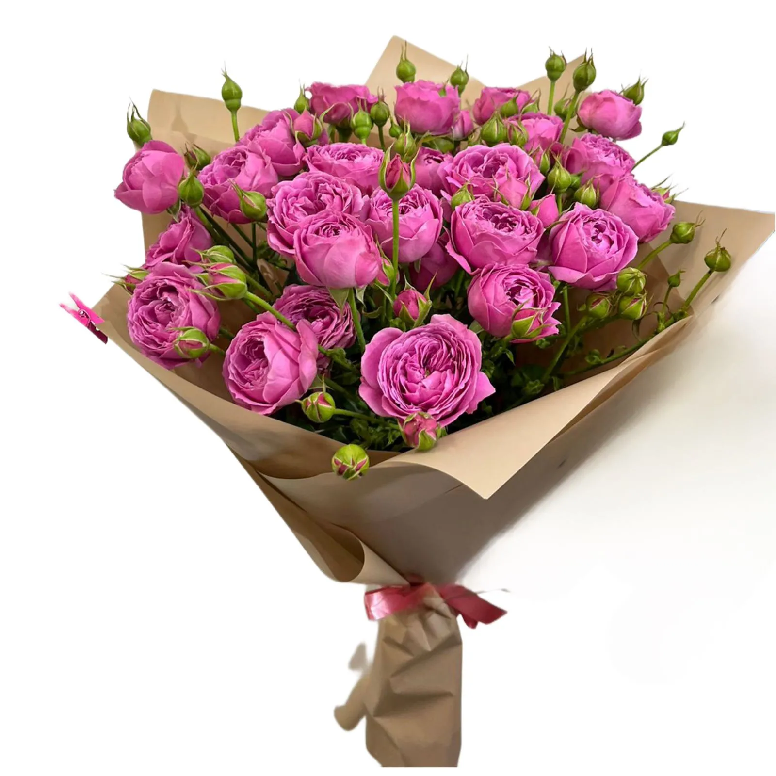 Кустовая пионовидная роза, упаковка, лента