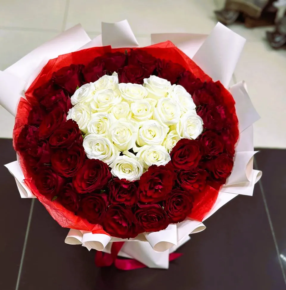 Букеты из красных и белых роз