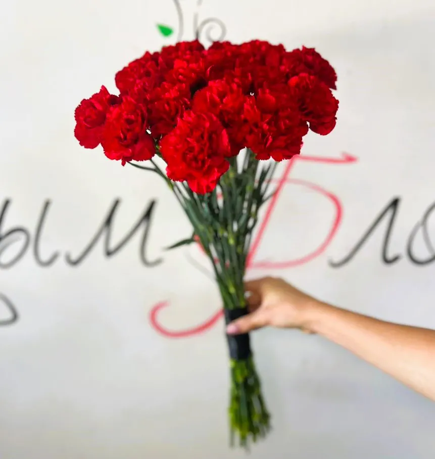Траурный букет из 10 красных гвоздик, оформленных под черную ленту, символизирует глубокую печаль и уважение к ушедшему. Каждая гвоздика, яркая и насыщенная, словно говорит о страсти и любви, которые будут жить в памяти навсегда. Черная лента, плавно обвивающая стебли, придает композиции элегантный и сдержанный вид, подчеркивая важность момента.